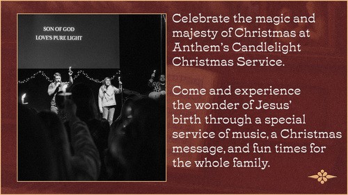 Our Christmas services will feature a meaningful blend of traditional and modern music, culminating in a beautiful candlelight moment to reflect on the true meaning of the season.